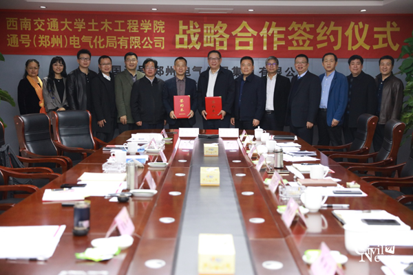 2019年3月19日下午3点,西南交通大学土木工程学院与通号(郑州)电气化局有限公司的校企合作签约仪式在通号(郑州)电气化局有限公司主楼106会议室举行。我院出席签约仪式的有蒲黔辉院长、刘学毅书记、王明年副院长、闻毓民副院长、勾红叶院长助理、占玉林院长助理、国家级实验教学示范中心杨梅高级工程师。企方出席代表有通号(郑州)电气化局有限公司党委书记、董事长马红林,总经理柳明宇,党委副书记、工会主席闻东来,副总经理、总工程师畅洪亮等。签约仪式由畅洪亮副总经理主持。
