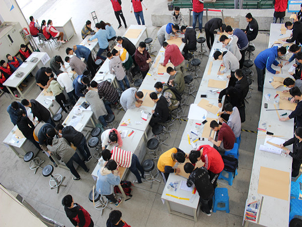就拿我们组负责的岩土比赛来说,赛前二十多天就开始准备比赛所需要的各种工具材料,包括牛皮纸白卡纸剪刀美工刀宽胶带中沙,以及加载木箱钢架PVC管......为了找齐所有的材料,我们组就跟参加了寻宝游戏一般:南门外的材料市场去过不止四五遍,三十分钟车程的金府机电城也去过两三次,为了买一根合适的PVC管问过十几个商家,与多位老板打各种交道。还有钢架,因为淘宝商家的疏忽,只能在顺丰空运的Buff之下,终于在比赛前一天及时赶到。关于策划流程问题,由于指导老师想要更好的比赛效果,比赛场地由三食堂三楼改至实验中心,我们不得不将已写好的方案推翻重写一份。多次讨论确定无误后,我们联系大一兄弟统计空闲时间,为他们安排适合自己的岗位,并通知他们按时到达。当然还有比赛前期的宣传工作,我们劳烦辅导员老师通知各班班长科技月的事宜,在微信公众号以及QQ官方账号上做推送,以及在扬华素质网发送各种公告,少不了的还有制作代表科创精神的宣传海报。在比赛前三天,我们接到要准备赛前实验的通知。我们在准备比赛场地、定期裁剪并发放比赛材料、通知选手提交模型时间的同时,又着手赛前实验的准备工作——借场地及安排相应人员协助选手进行加载工作。有时候因为选手太多不得不延长加载时间,以至于我们兄弟只能饿着肚子收拾加载后的场地。我所说的这些,都是真真实实发生在我身边的。这些幕后工作可能不如比赛当天光鲜亮丽,但这是整个比赛的基石,并直接决定我们这个“模型”能不能通过各种“加载”。