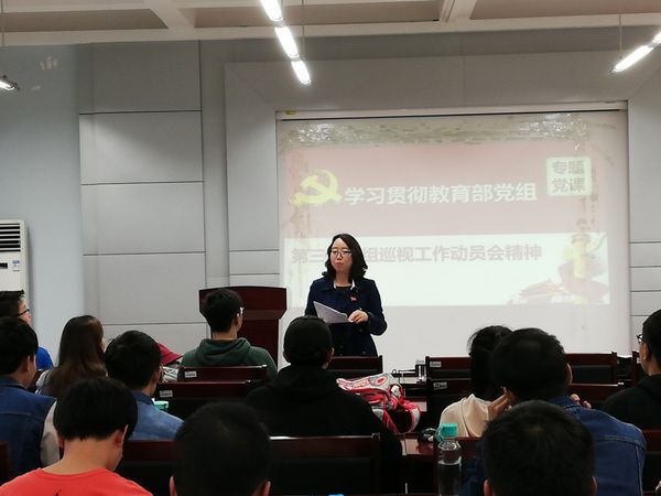 熊麟老师首先讲解了陈德文同志在教育部党组第三巡视组巡视工作动员会上的动员讲话中的四点意见,包括:深入学习贯彻习近平新时代中国特色社会主义思想和党的十九大精神,切实把思想和行动统一到中央关于新时代巡视工作的部署要求上来;全面贯彻落实全国教育大会精神,坚守政治巡视职能定位,牢牢把握巡视重点任务;依规依纪开展巡视,确保工作高效有序推进;强化政治担当,坚决完成部党组交给的巡视任务。