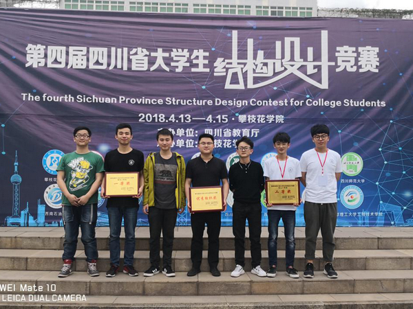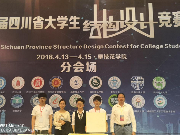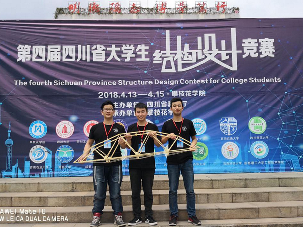 2018年4月15日,四川省第四届大学生结构设计竞赛暨全国大学生结构设计竞赛选拔赛在攀枝花学院落下帷幕。经过两天紧张的现场制作、赛场答辩及加载测试,由我校土木工程学院教师余志祥、栗怀广任指导教师,邓宇航、路桦铭、顾天宇三名同学组成的建筑工程组代表队获得四川省第四届大学生结构设计竞赛建筑工程组一等奖;由袁冉、毛坚强老师任指导教师,侯禹辰、熊港、周凯歌三名同学组成的岩土工程组代表队获得四川省第四届大学生结构设计竞赛岩土工程组二等奖。
