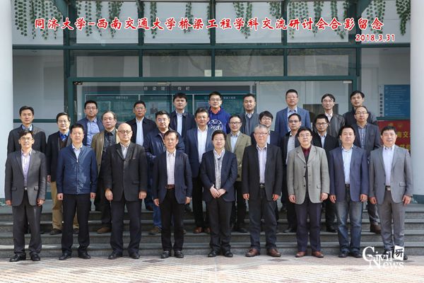 2018年03月31日,在土木工程学院院长蒲黔辉教授带领下,桥梁工程系教师委员会副主任李亚东教授、桥梁工程系主任李永乐教授、副主任李小珍教授、张清华教授、肖林副教授及系助理向活跃副教授一行7人赴同济大学,与同济大学土木工程学院院长赵宪忠教授、副院长李建中教授、土木工程防灾国家重点实验室主任葛耀君教授、桥梁工程系主任孙利民教授、土木学会桥梁及结构工程分会秘书长肖汝诚教授、桥梁抗风技术交通行业重点实验室副主任朱乐东研究员、桥梁系党总支书苏庆田教授、桥梁系副主任赵林教授、副主任阮欣副教授、桥梁工程研究所副所长彭天波副教授、桥梁系副总支书记吴培峰老师、吴迅教授、李方元教授、陈惟珍教授、顾萍副教授、李奇副教授、刘超副教授、孙斌副教授、姜旭副研究员、王达磊副研究员、夏烨副研究员等就桥梁工程学科发展进行了科研交流和座谈。