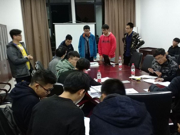 宣讲会后,选手们经过了一系列的充分准备,到了最后的答辩阶段。本次答辩于11月20日晚7:30在X4312进行。6:30左右,答辩选手已经陆续到场,并积极的开始了答辩前的准备工作。本次共有十个队伍进行答辩,为了保证充分的公平与秩序,我们采取抽签的方式来队伍答辩的顺序。