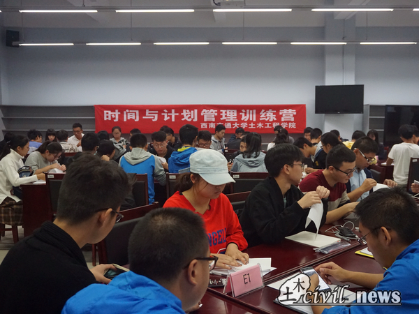 10月21日下午2点,由土木工程学院承办的“时间与计划管理训练营”于X4250教室在党委副书记李锦红的主持下开课。辅导员刘萍,赵梦笛,张进老师也参与了课程。