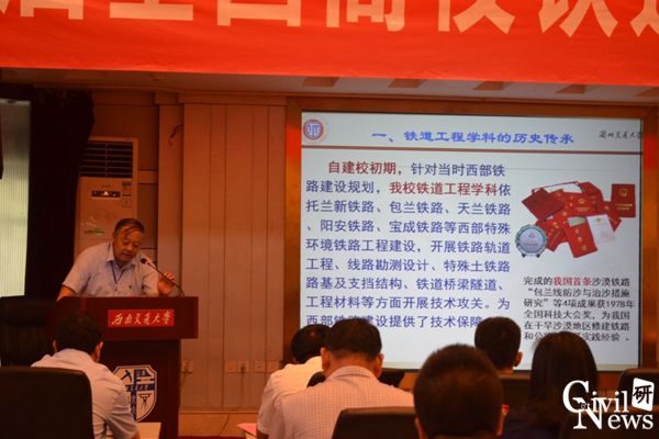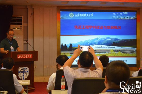 兰州交通大学土木工程学院副院长王旭教授做了以“铁道工程专业现场实验室建设”为题的报告,介绍了兰州交通大学铁道工程专业的历史传承、现状以及铁道工程实践基地的建设。