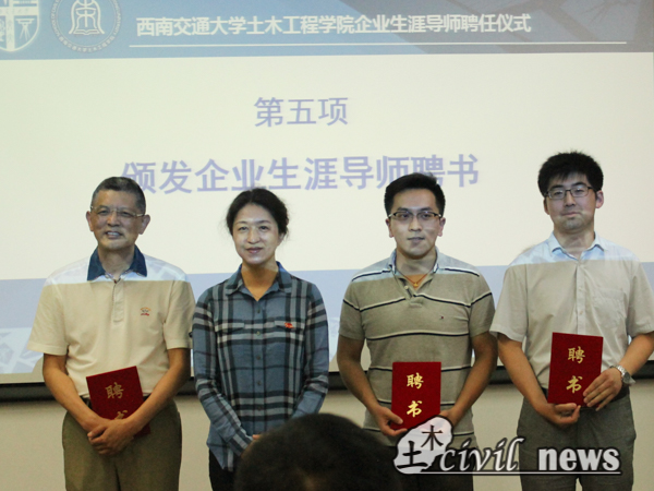 5月25日下午14:30,土木工程学院在X4250教室隆重举行企业生涯导师聘任仪式,出席聘任仪式的领导有学生工作部部长高平平、招生就业处常务副处长丁伟、对外合作与联合处副处长潘昱、土木工程学院副院长富海鹰、土木工程学院党委副书记李锦红、土木工程学院团委书记刘萍,同时共有鲲鹏建设集团有限公司董事长毛晨阳先生等12位企业生涯导师出席了本次聘任仪式,仪式由李锦红副书记主持。
