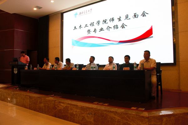2016年8月26日,土木工程学院2016级新生师生见面会暨专业介绍会在扬华讲堂召开。学院党委副书记李锦红主持本次见面会,出席本次见面会的有学院副院长崔凯、学院副院长兼交通土建系主任张克跃、学院党委副书记兼交通土建系党总支书记孔书祥、西南交通大学发展规划处处长邱延峻、道路与铁道工程系主任王平、地下工程系主任王明年、桥梁工程系副主任唐继舜等以及导师、班主任和2016级的全体新生。