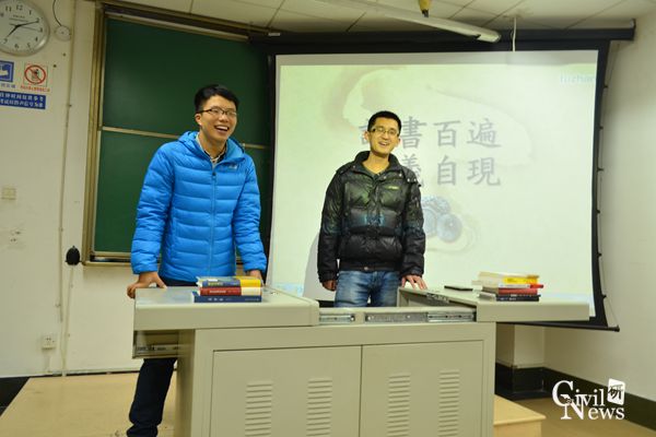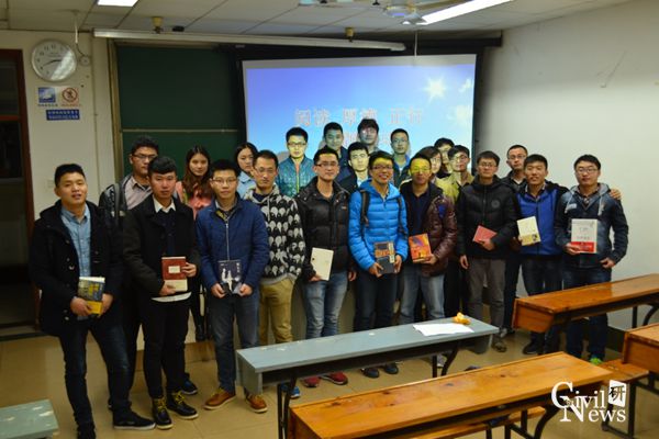 12月6日晚上7点,由土木工程学院2015级学硕遂道2班和学硕桥梁3班共同举办的“阅读-厚德-正行”主题读书会在逸夫楼4303B教室举行。本次活动旨在为同学们推荐一些在紧张的学习、科研生活中能够让自己身心得到放松的有意义的图书。本次活动由学硕隧道2班班长段东亚主持。