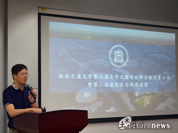 5月14日西南交通大学第九届大学生课外创新实验竞赛土木工程学院活动,暨第二届建筑信息模型竞赛——BIM决赛在四号教学楼X4250教室开办。此次活动有幸邀请到西南交通大学设计院副院长刘文日、四川省交通运输厅公路规划勘察设计院BIM中心主任乔科、中铁隆工程集团有限公司设计研究院BIM工程师刘正军、软易达科技股份有限公司董事长冯军、中建八局西南公司信息技术中心主任张琴、西南交通大学BIM中心执行主任李秉展等担任评审。