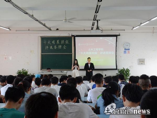 5月19日下午2时30分,由西南交通大学土木工程学院学业与发展指导中心承办的“十大明星班级”评选答辩活动于X2519正式开始。参加此次大会的评委嘉宾有土木学院党委副书记李锦红、团委书记刘萍、团委副书记付真珍以及各年级辅导员们。本次活动由来自主持团的魏云格和刘锦峰同学主持。