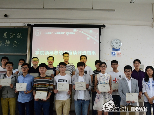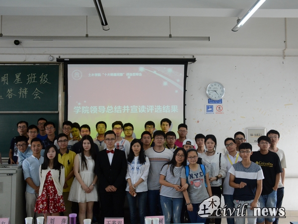 随后的提问环节短暂而轻松,却终究规避不了结果揭晓之时现场的紧张。最终,14级16班等十个班级获得土木学院2016年度“十大明星班级”称号,14级3班等五个班级获得提名奖。下午4时30分,2016年度土木工程学院“十大明星班级”评选答辩活动圆满闭幕。