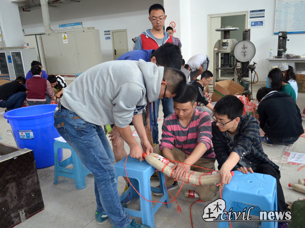 2015年4月19日上午,土木学院在土木工程实验中心举行了第十五届结构设计竞赛隧道组决赛。下面让我们回顾本次精彩的赛事。