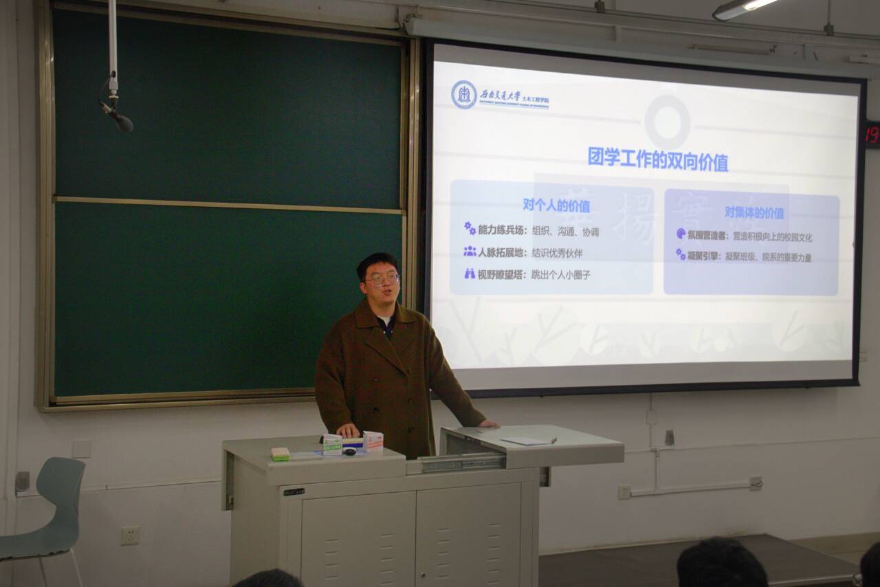 土木工程学院青年讲师团成员、2025级辅导员杨颖钊老师,为全体班团干部开展“团的十九大精神”专题团课。土木工程学院青年讲师团成员、2025级辅导员梁涛老师,面向新生班团干部开展“新生班干部理论素养和能力素质提升”专题培训;土木工程学院青年讲师团成员、2025级辅导员郭哲维老师,面向新生团学组织干事开展“新生团学组织干事能力素质提升”专题培训;土木工程学院青年讲师团成员、2025级辅导员彭政涛老师,面向初级班全体学员带来“党的二十大精神、习近平新时代中国特色社会主义思想及爱国荣校”专题讲座;