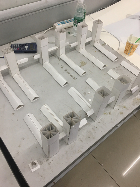 在模型制作过程中,我们也迷惘过,甚至想过放弃。走在图书馆前的大道上,一天的疲惫让她显得有些憔悴。路边的灯光,微微掠过她的脸庞,空气宁静却有几分压抑。她说,“晚上,还要开会,不知道能不能去做。”沉默了几秒,她苦笑地说道,“我有点想……放弃。”那天距离交模型的日子只有两天了,但模型的制作还差一大截。确实到最后能不能完成,能不能有结果都是未知的,但是已经熬了几天了,现在可能不是放弃的时候吧。我鼓励到,“最后结果什么的也不重要,尽力能完成吧。”