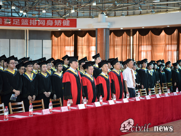 伴随着离别的歌声,授位仪式开始了。全体人员起立,奏唱国歌,雄厚的歌声中,是所有人的热忱。在党委书记刘学毅教授宣读《土木工程学院2018届本科生毕业及授位决定》之后,土木工程学院学位委员会委员分区依次为毕业生逐个授学位礼并合影留念,这是属于2018届土木毕业生的神圣时刻。休息时间,毕业生们与各位教授,辅导员老师和家长进行了签名留言活动。