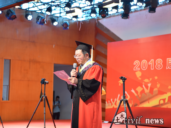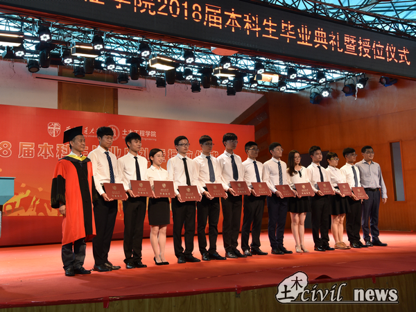 16:00点整,毕业典礼准时举行。蒲黔辉教授和王明年教授为陈景适等十二位毕业生代表颁发了毕业证书。接着,李锦红书记宣读了《土木工程学院2018届优秀毕业生表彰决定》,并和刘学毅书记一同为王皓正、郭文琦等十二位省、校级优秀本科毕业生颁发优秀毕业生获奖证书。在大学生活中必不可少的一部分就是学生工作,一位位辛勤付出的学生干部的付出不可忽视,马建林教授为祁旺等十二位14级毕业生优秀学生干部赠送了学院的特制纪念品。随后,到场的所有师生共同欣赏了由新闻中心精心制作的毕业视频,视频再现了同学们在交大学习生活的点点滴滴,记录了毕业生对母校、对学院、对老师的感恩与祝福,纪念他们那已经逝去四年大学生活。