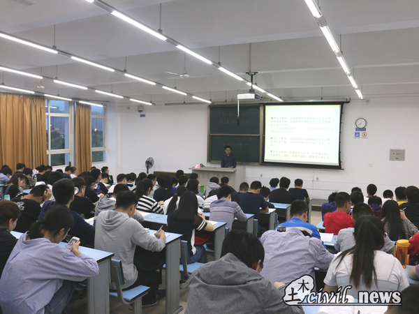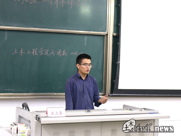 4月27日晚七点,为深入贯彻学习习近平新时代中国特色社会主义思想和党的十九大精神,由土木工程学院分团委主办的“十九大报告与当代青年”系列讲座暨团支委2018年度集体学习于X2418展开。本次讲座由研究生辅导员、博士宣讲团团长石立春老师主讲,土木工程学院2016级、2017级全体团支书、组织委员和宣传委员参加学习。