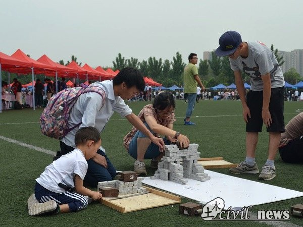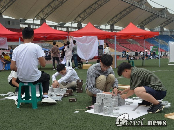 另一个则是隧道工程结构承重竞赛,参与者使用统一规格的大理石板,通过叠加石板的方式形成一个类似隧道的结构。这种简单的竞赛吸引了大批的参与者,许多其他学院的学生参与后表示,这个活动很有趣,能够更生动形象地了解土木学院。