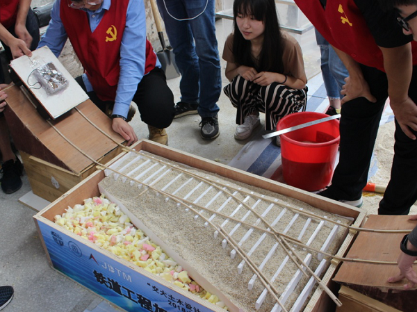 随后在4月21日,“土木科技月”迎来了地下工程组的比赛。有关拼接结构的部分是本次赛题的最大难点。现场的模型加载有成功也有失败,尽管结果不同,但对每位参赛选手来说,这都是满满的收获。地下工程组比赛结束的次日,铁道工程组迎来了最后的决赛。一个个制作精细的模型凝聚着同学们多少个日夜以来的付出,不过所有的付出都在这加载成功的喜悦当中变得值得且有意义。