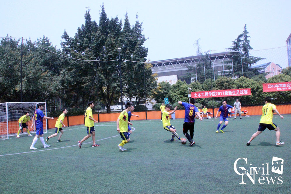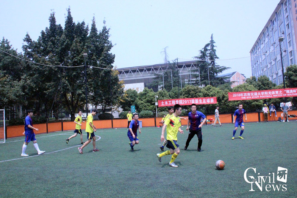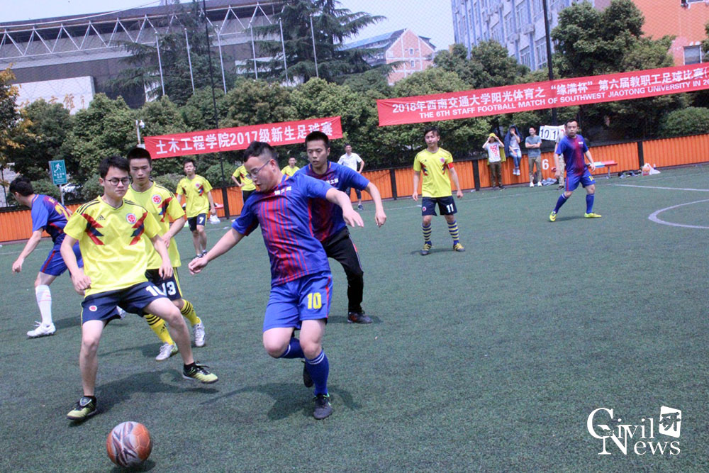 4月18日中午12:30分,2018土木工程学院研究生足球比赛小组赛第三轮在九里校区足球场如约上演。今天是小组赛的第三轮,有两场比赛,分别是岩土对阵综合班和博士班对阵结构道铁友谊队。