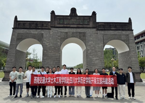 2025年4月27日,西南交通大学土木工程学院2024级桥梁2班党支部、2024级结构2班党支部、2023级硕士结构班党支部以及隧道博士党支部一行在研究生辅导员郑非老师带领下,前往四川大学历史文化学院,与四川大学历史文化学院2024级硕士1班支部、2023级博士支部共同开展了以“学习中央八项规定精神,筑牢作风建设思想防线”为主题的支部联建共学活动。此次活动旨在通过交流学习,进一步加深对中央八项规定精神的理解,强化党员作风建设,促进两校之间党建工作经验的互学互鉴。
