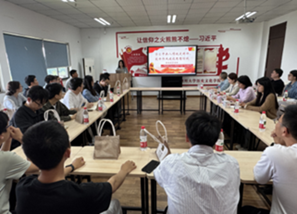 紧接着,四川大学历史文化学院2023级博士党支部书记刘凡领学了中央八项规定精神,西南交通大学土木工程学院优秀硕士党员代表宋雯钰同学则对党的二十届三中全会精神进行了领学。两位代表的讲解内容详实、分析透彻,使在场党员对相关政策精神有了更加深刻的领会。
