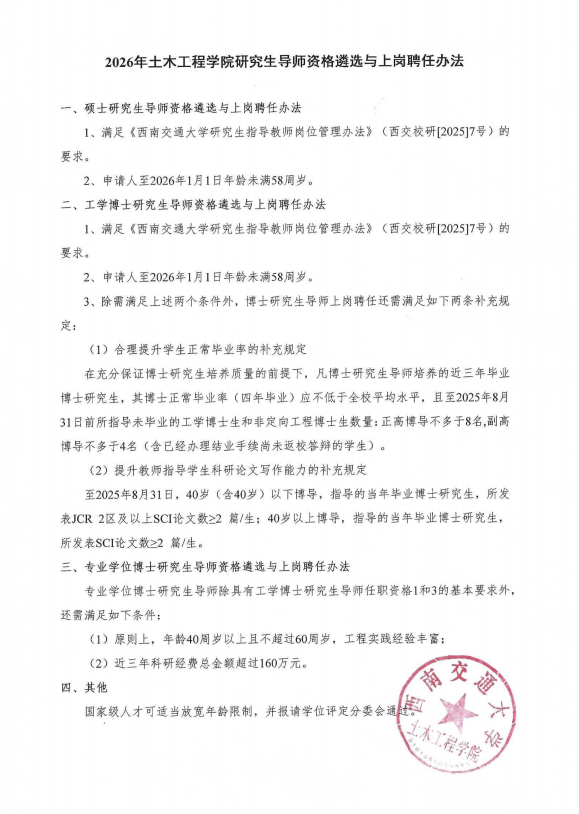 2026年土木工程学院研究生导师资格遴选与上岗聘任办法
