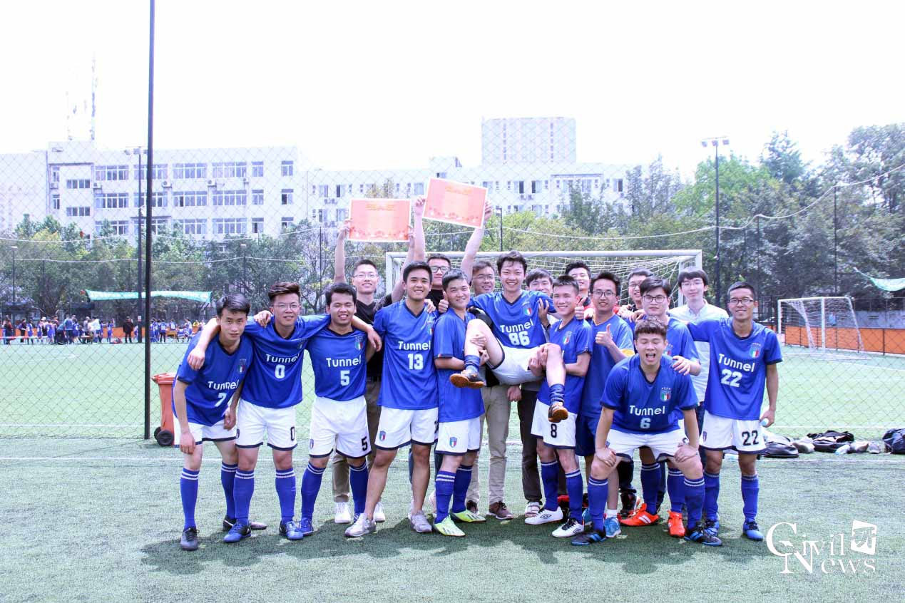 最有看点的莫过于此次冠军之战,双方的实力不相上下,比赛场面十分扣人心弦。面对博士班的强劲欺凌攻势,隧道队的后防线就像一堵难以逾越的城墙,完美的拦下了所有的进攻。双方展开了对攻模式,运动员们奋力拼搏,奔跑如离弦之箭,喊声振奋人心,青春的活力在绿茵场上肆意的绽放。虽然场上双方都贡献了数次精彩的打门,但都未能进球。终场时,比分定格在1:0,隧道队赢得此次比赛的冠军,隧道的王奇灵同学获最佳射手称号。博士班则获得此次比赛的季军。
