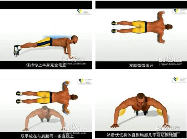 1、动作规范:保持上半身完全笔直,双脚微微张开,双手放在与肩膀同一条直线上,手臂半弯,然后伏低身体直到胸部几乎能贴到地面,最后回到初始状态。按1分钟完成的标准俯卧撑个数计取成绩。运动员只有一次比赛机会。