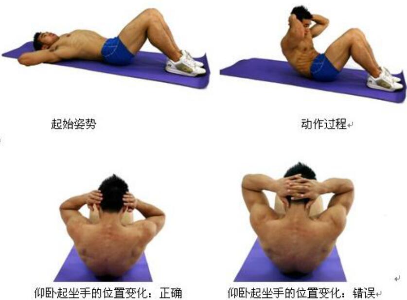 1、动作规范:运动员身体仰卧在垫上,双手贴于耳后,同时,两臂打开,手背及手臂均触垫;双脚放置在垫上,两腿屈膝(两膝可稍分开),大小腿呈直角;一人双手压住考生脚背。起坐时,双肘必须触及两膝;仰卧时,贴于头后的两手背及肩胛骨必须触垫。按1分钟完成的标准仰卧起坐个数计取成绩。运动员只有一次比赛机会。