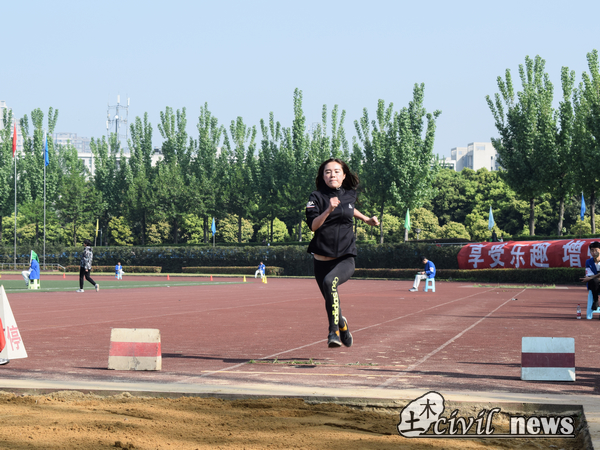 另一边,学生甲组女子铅球的运动员们也向所有人展现出女生的力量,谁说女子不如男?她们专业的动作和坚毅的眼神体现出她们对力量的尊敬,她们一次又一次用尽全力将铅球抛出,铅球在空中划过,在沙坑中留下的印记,那是她们努力拼搏,奋斗不息的象征!比赛中,韦雪菱同学以7.64米取得第二名的好成绩,为土木学院带来荣誉!