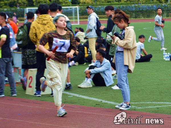 在学生组这边,首先进行的是有趣的“勇往直前”项目比赛。虽然是趣味项目,但是无论是对足球的控制还是对障碍的规避都需要很强的竞技能力。土木同学以巧妙的运球技巧和良好的心理素质在其他学院中出类拔萃,取得了第一名的非凡成绩。这一个第一名,不仅激励了后面的赛员,更代表着土木人的默契精神。接着进行了女子跳远以及女子仰卧起坐比赛。土木女赛员们巾帼不让须眉,在各自赛场上发光发热。其中张明月同学在仰卧起坐中取得了第八名的好成绩,韦雪菱同学在跳远中占得了第六名的优秀位次。她们以强大的身体柔韧度和力量协调能力向我们展现了女生的身体优势以及顽强的拼搏精神。