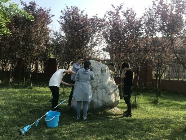 为迎接123周年校庆,为交大师生创造一个整洁舒适的环境。2019年4月13日,土木青协外联部六位志愿者们在西南交通大学犀浦校区南门附近共青林石碑展开了雕塑清洗的志愿活动。