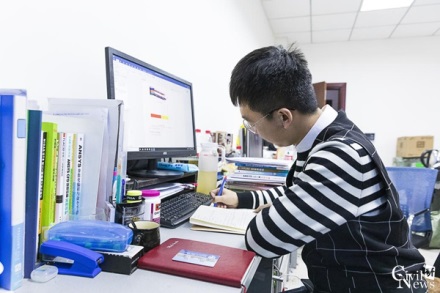 记者在仲恒工作室的桌子上看到了堆积如山的书籍和资料,仲恒向我们介绍这些都是一些与专业相关的论文献资料和学习英语的工具书。在他看来,作为刚刚步入科研领域的初学者,最需要的就是一种脚踏实地的态度,科学研究不可能一蹴而就,而是一个日积月累、循序渐进、由质变到量变的过程。他说他在一年的学习中总结出读论文是做科学研究中极其重要的一部分,你读了多少篇论文,很大程度上决定了你在这个研究方向能写出多少篇论文,你读的是什么级别的期刊论文,也会影响到你的论文能达到怎样的高度。