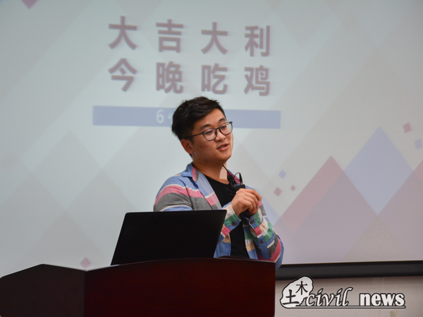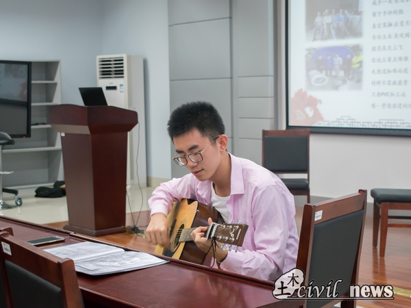 后来,是熊镇疆学长的演讲,他首先向他们介绍了他的想法:我们一直在关注外界给我们的反馈,但是当我们自己安静下来时,应该自己喜欢自己,这样才能变得优秀。从演讲开始,熊镇疆学长就于学弟学妹们有诸多互动,一开始就给弟学妹们带来了一个拳击的体验,告诉了他们自律的重要性,他正是有着铁一般的意志成为了土木学院第一“型男”,才会在拳击方面有所建树。熊镇疆学长在大学三年内做完了所有的普通工作,做过外卖哥,洗碗工,保安,销售员,驻唱歌手,物理家教,校园形象大使,校园领袖演说家。可以说是有着丰富的工作经历,他也告诉他们这些工作都是很有意义的,带给了他很多感动和经验。在演讲的最后,熊镇疆学长以自己改编周杰伦的一首歌《告白混凝土》作为结尾,同学们在优美的吉他声和歌声中结束了演讲环节。