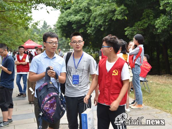 上午八时左右,新生们陆陆续续到达迎新点。各班助辅热情地迎接新同学们;土木园区的志愿者们有条不紊地进行着新生注册和分发新生大礼包的工作;党员先锋队的同学们则接过家长手中的行李,为他们递上一杯水;新生们在迎新点真切地感受到了来自土木学院学长学姐的热情服务与温情关怀。