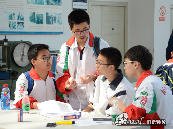 第三站,同学们来到了土木工程教学示范中心,在这里他们分成小组积极思考讨论并动手制作模型,亲身感受土木工程的乐趣。模型制作完成后现场进行了模型的加载测试,部分模型成功加载。随后土木工程学院团委书记刘萍老师等人在现场对模型制作进行了评奖颁奖,鼓励同学发扬积极思考创新的精神 。
