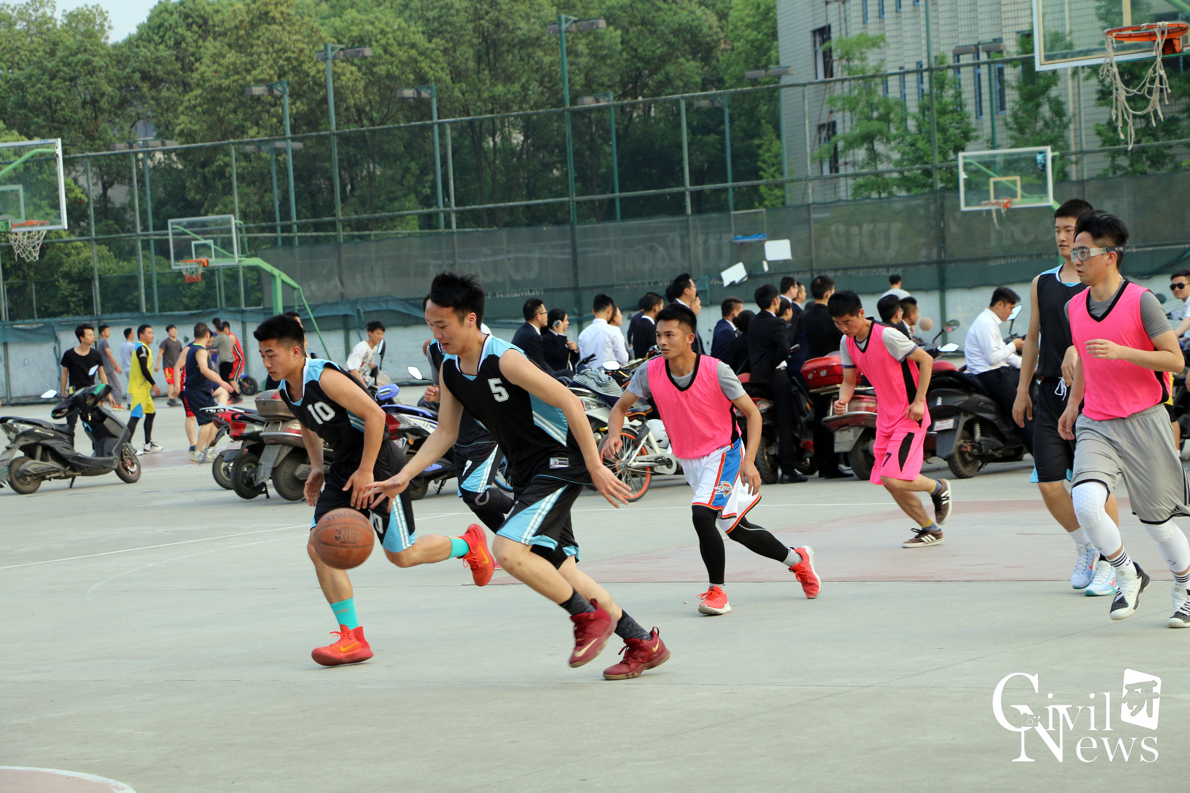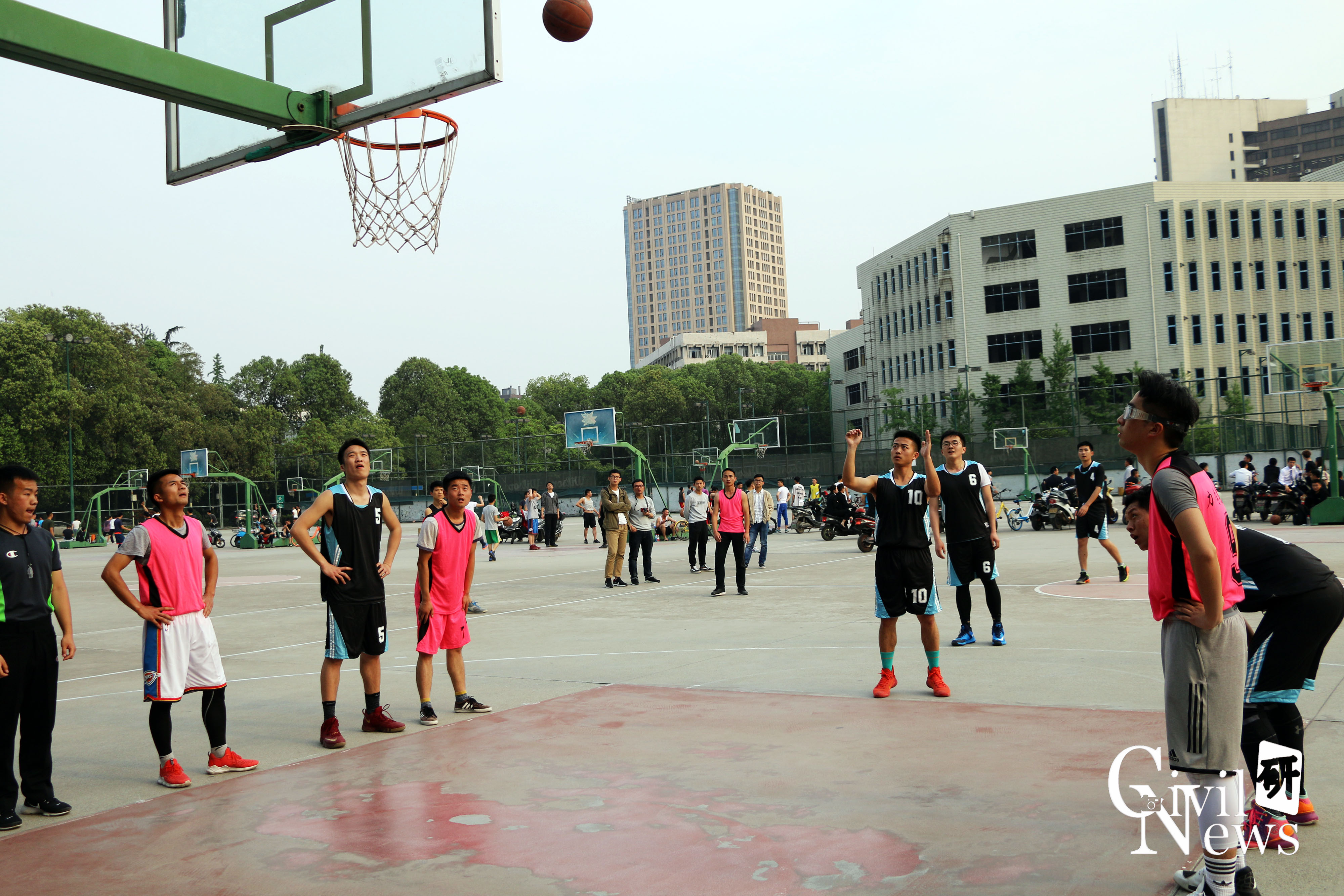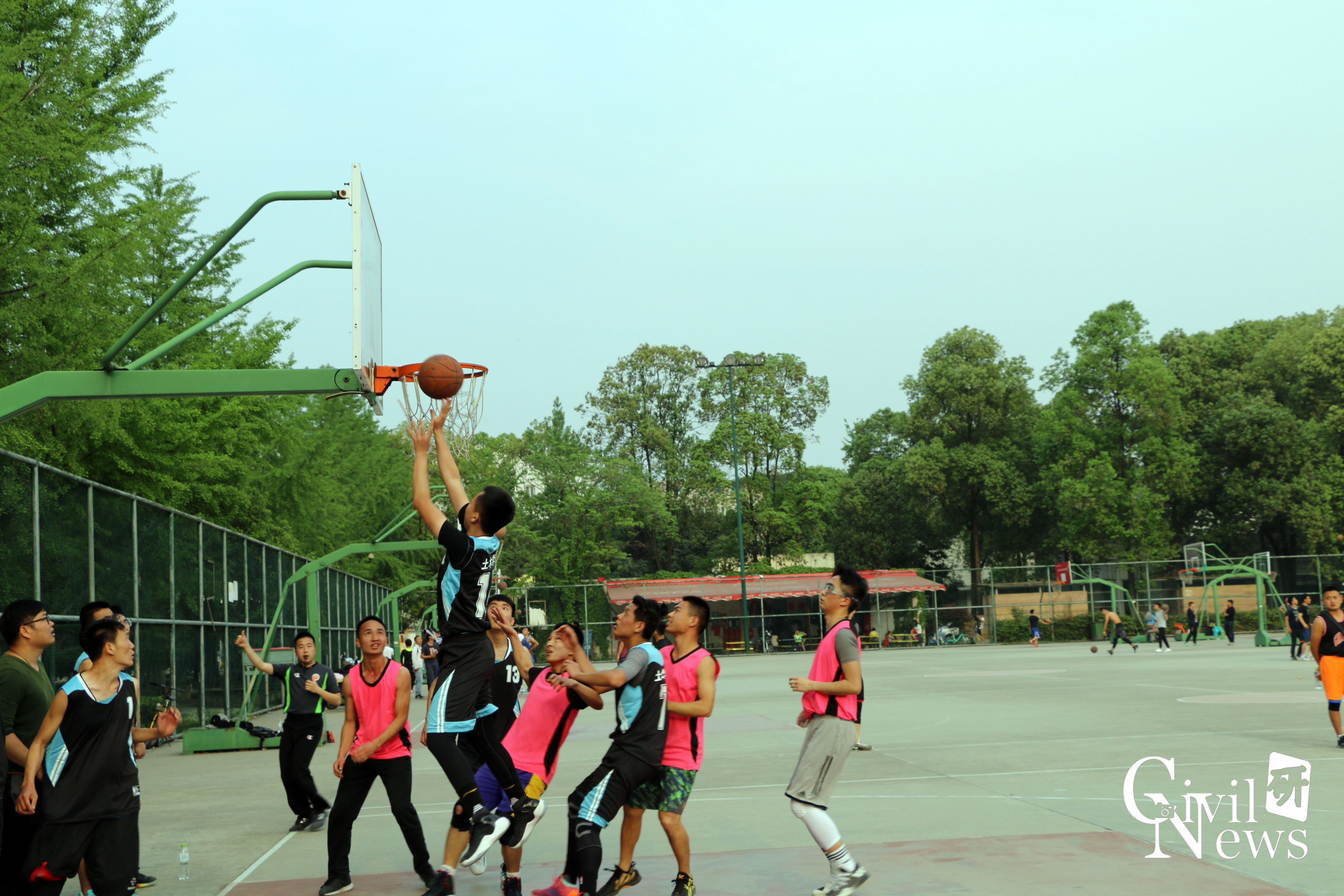 2018年4月9日下午17:15在九里校区室外篮球场,我院与力学学院联盟队在由西南交通大学研究生会举办的研究生院际篮球联赛第一场的比赛中展开了激烈的较量。身着蓝黑色球服的就是我们土木工程学院的篮球健将们,他们可是经过重重选拔才站在这个赛场上,可谓个个都是“灌篮高手”。身着玫粉色球服的就是力学学院联盟队,他们也斗志昂昂,等待着比赛的到来。