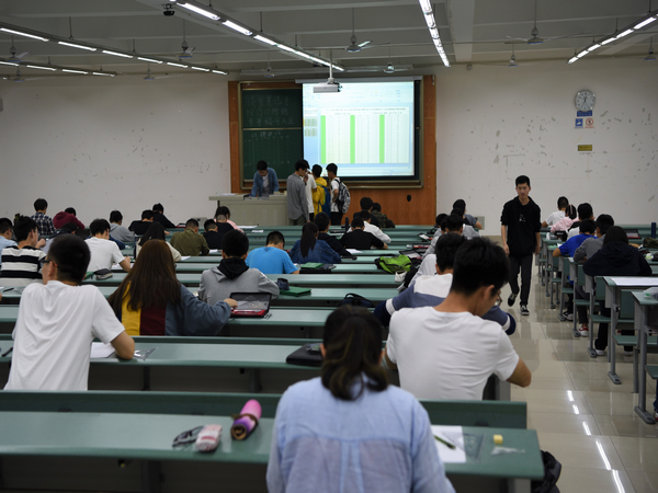 晚上六点五十,记者走进图学技能大赛的现场,近距离欣赏交大学子展现自我的风采。临近开考,教室里已坐满了前来竞赛的同学。在大学生科创中心同学们的组织下,同学们有条不紊的进行签到及对号入座,安静地等待考试开始。记者发现,在竞赛开始后,科创中心的工作人员逐个对尚未到场参加竞赛的同学进行电话通知,彰显了他们尽职尽责的精神。在此,记者在此也提醒各位同学关注比赛通知、了解竞赛时间并提前进行合理的时间安排。竞赛过程中,同学们或冥思苦想或奋笔疾绘,都在十分认真的答题,在方寸间挥洒智慧与风采。约过八点,便陆陆续续有同学提前交卷出场,这些同学多是带着胸有成竹的微笑离去,只留下一个自信的背影。