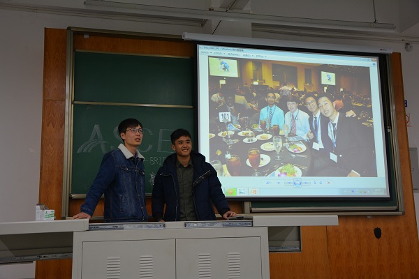 2017年3月24日晚19:30,由美国土木工程师学会西南交通大学国际学生分会(ASCEISG-SWJTU)举办的ASCE Student Conference经验交流分享会于犀浦校区X4357顺利举行。2017年西南交通大学钢桥队队员依次上台,与参会同学分享钢桥比赛从准备到赴美参赛各阶段的经验及各自的参赛感受。ASCE Student Conference作为美国土木工程领域最高级别赛事,也为同学们揭开了其神秘面纱。