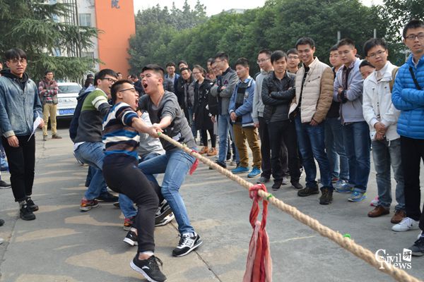 为发扬团队精神,增强班级凝聚力,促进各年级、班级之间的交流、丰富同学们的课余生活,2016年11月14日中午,土木学院一年级研究生在学校詹天佑体育馆前进行了拔河比赛的小组赛,小组赛采用三局两胜制。