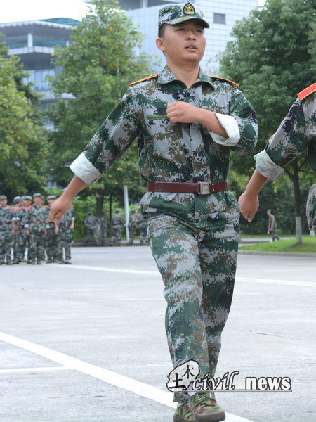 同学们都以饱满的热情和高昂的斗志投入到军训中,教官同志们也认真带领大家完成军训任务。
