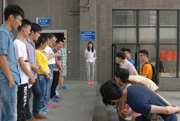 第二单元是户外活动“情景模拟”,五组队员需要在一定时间内完成多项任务。考验的不仅仅是各位队员的体力和智力,更考验一个团队在压力面前的凝聚力,在困境中的坚韧与勇气。阳关下,学校中奔跑着五个小组成员,流淌在空气中的燥热又让大家不得不汗颜。通红的脸颊、布满汗珠的额头都彰显了大家为此而付出的努力,然而即便种种因素影响着大家,求胜的决心依然从每个人的眼眸中散发出不可阻挡的光芒!