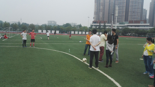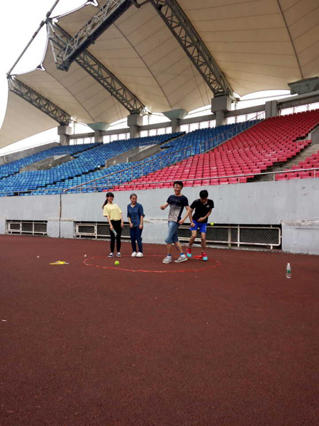 时间已经过去两个小时,活动只剩下最后两项,队伍们陆陆续续赶到了北区田径场——第五个活动点,按照先后顺序依次进行游戏。