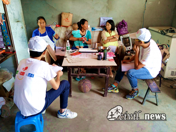 接下来团队来到了一户姓邓的家中,志愿者们主要针对村里的经济发展进行了解。村里大多数年轻人都外出打工,家中基本上都是老弱病残孕人群。近几年,每家每户的生活水平都有很大提高,但是始终存在一个问题:没有实现均衡发展,底层家庭的生活水平还有待提高,底层学生的受教育质量得不到根本性的保证。
