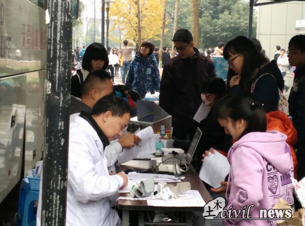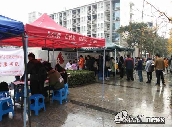 为缓解成都市用血紧张的现状,为发挥当代大学生爱心奉献、服务社会的精神。土木工程学院青年志愿者协会无偿献血志愿宣传服务队于2015年12月4日举行了以“采血车进校”为主题的献血活动。