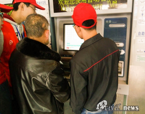 本次志愿者服务活动共分为两个部分,第一部分是一些人负责在高铁站自动售票机旁帮助前来买票的人购买火车票。面对我校土木青协志愿者的热情帮助,前来买票的人都纷纷表示赞许和感谢。另我们印象最深刻的,是一位要去宜昌的老爷爷,第一次独自操作自动售票机,他感到了些许的迷茫和无助,但在我们土木青协志愿者的耐心帮助下,这位老爷爷在很短的时间内,就买到了自己想要的车票。本以为会在买票时不知所措的老爷爷,面对我们志愿者的帮助,显得非常惊讶和开心,在连道了几声谢谢之后,匆匆离开。