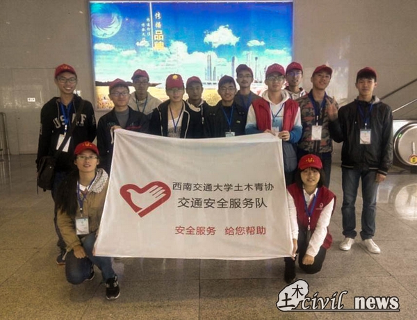 十一月二十八日下午两点,西南交通大学土木青协交通安全服务队的成员前往犀浦高铁站开展了“高铁站志愿者服务”活动。此活动诣在培养我校学生无私奉献的精神,使学生树立强烈的社会责任感并加强学生的交通安全意识。