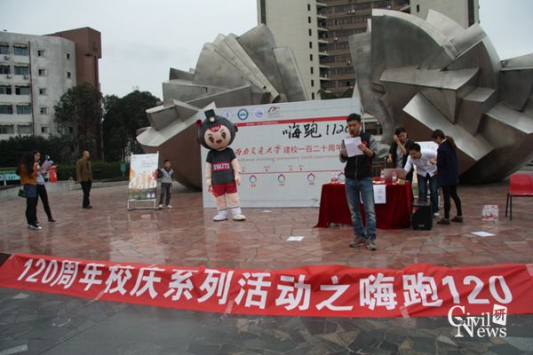 11月7日下午14:30,在2016年西南交通大学成立120周年的背景下,土木学院在九里校区南门雕塑前举办了一场趣味马拉松活动。活动由土木学院研究生会组织策划,吸引了许多同学参与。