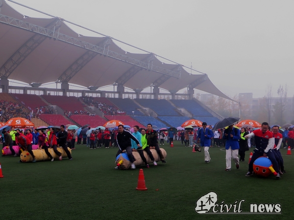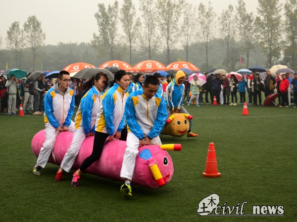 第三项趣味活动是协力竞走,这是是四个人的项目,这个项目需要大家将脚绑起来齐心协力向前走。参赛队员表示,这个活动最好一个人在前面指挥大家前进,众人一起喊口号,就像在划龙舟一样。我们土木学院的四位组员在捆好绑脚后,勇敢的前进了,“一二一,一二一,一二一”,协调的口号声中,脚步一致,大步向前,手脚并用,终点近在咫尺。“哈哈”伴随着一阵一阵的笑声,协力竞走抵达终点。