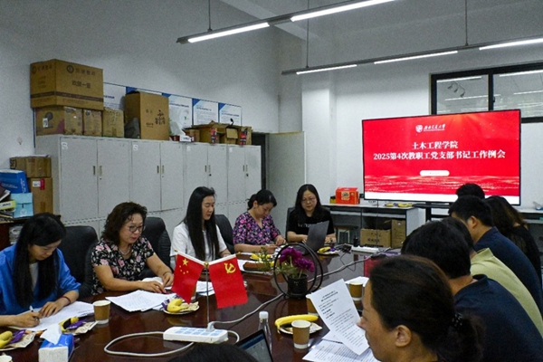 土木工程学院2025年第4次教职工党支部书记工作例会于2025年5月21日上午10:00在犀浦校区图学及BIM研究所会议室X4202召开,此次例会由图学及BIM研究所党支部承办,土木学院党委郑江书记、车小洁副书记、刘萍副书记、甘泉、熊麟、王楠等领导与各系室支部书记或支部委员参加。